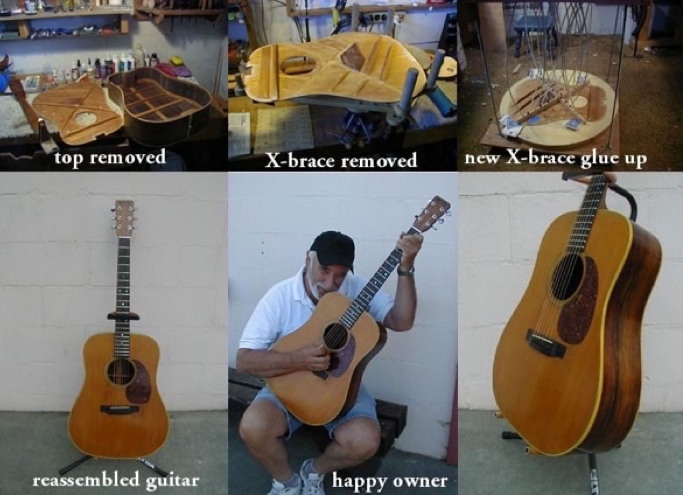 Many loose braces, neck reset, refret and a new bridge